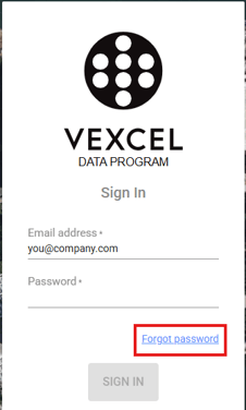 How do I reset my password for the Vexcel Platform?